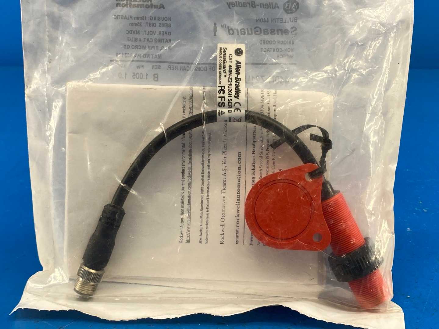 - **Manufacturer:** Allen-Bradley - **Product Line:** SensaGuard - **Model Number:** 440N-Z21U26H - **Product Type:** Non-Contact Safety Switch - **Sensing Technology:** RFID Coded - **Safety Circuit Protection:** Yes - **Operating Voltage:** 24V DC - **Outputs:** 2 N.C. Safety Outputs, 1 N.O. Auxiliary Output - **Safety Rating:** SIL 3, PLe (EN ISO 13849-1) - **Sensing Distance:** 8 mm (Nominal) - **Operating Temperature Range:** -10°C to +55°C - **Housing Material:** Plastic - **Ingress Protection:** IP69K - **Mounting Orientation:** Multiple Positions - **Connector Type:** M12 Quick Disconnect - **Approvals:** CE, UL, cUL, TUV, and CCC - **Series:** 440N SensaGuard