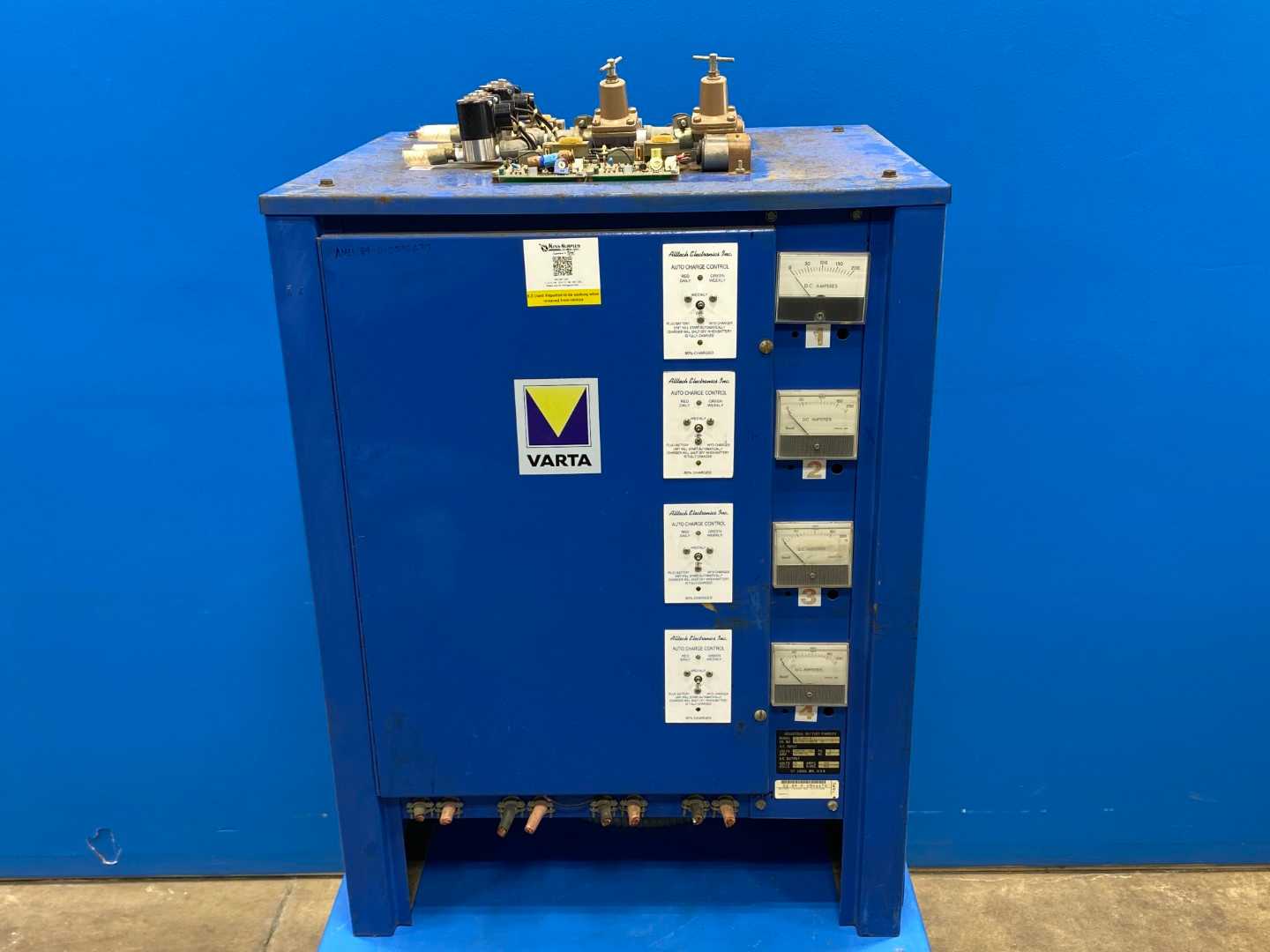 The Varta 24 Volt 3B12-450-4 Electric Forklift Battery Charger is designed specifically for charging lead-acid batteries used in electric forklift trucks. Varta, a recognized name in the battery industry, has a long-standing reputation for producing reliable and efficient energy solutions. The 3B12-450-4 model provides a robust charging solution that caters to the demanding needs of various industries, including warehousing, logistics, and manufacturing. This charger is engineered to improve battery performance and lifespan, making it an essential component for businesses relying on electric forklifts. Key features of the Varta 3B12-450-4 include its built-in safety mechanisms to protect against overcharging and short circuits. Its compact design allows for easy integration into existing charging setups, although it requires the addition of suitable cables for optimal operation. This charger not only enhances operational efficiency but also contributes to a more sustainable approach in material handling by facilitating the use of electric vehicles. As companies shift towards greener solutions, the Varta 24 Volt charger stands out as a reliable option to ensure that electric forklifts remain powered and ready for demanding tasks.
