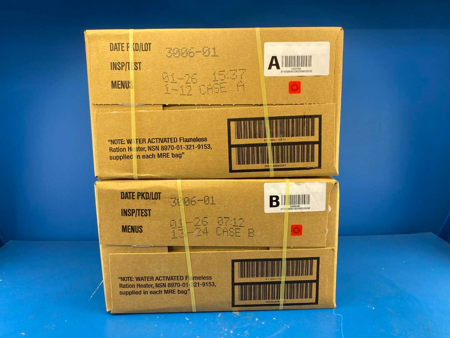 06.26 MRE Case FREE SHIP A/B Combo (24 Pack 2 Cases) U.S. Military Genuine Ready to Eat Meals Case A and B